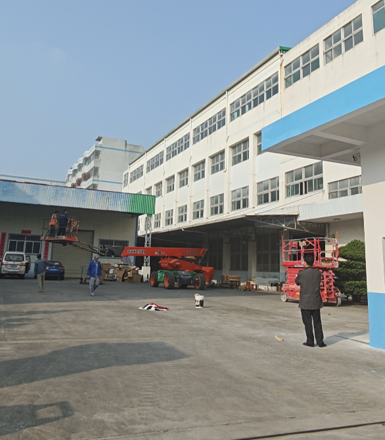 在外观形象升级上,厂区外立面采用现代化工业风设计,原老旧墙面全部翻新为纯白色石漆,搭配蓝色企业标识线条,既凸显了机械制造企业的沉稳质感,又增添了科技感与时尚感。入口广场重新规划布局,增设企业LOGO主题发光标识牌,大幅提升了企业品牌辨识度。